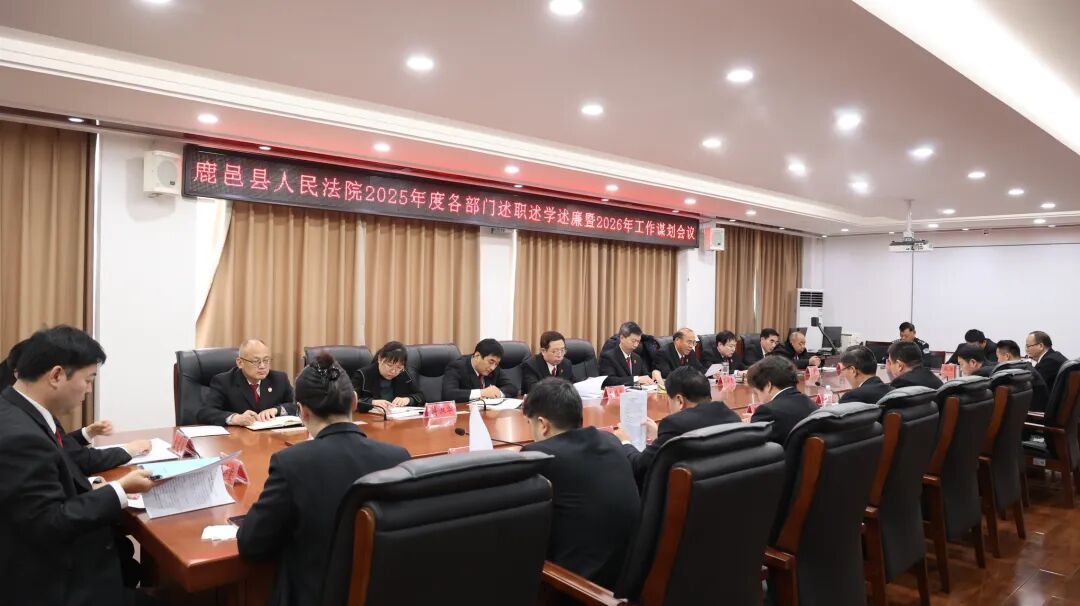 2月2日下午,鹿邑法院召开2025年度各部门述职述学述廉暨2026年工作谋划会议。党组书记、院长张述涛出席会议并讲话,党组副书记、副院长周新杰主持会议,在家院领导及各部门负责人参加会议。
